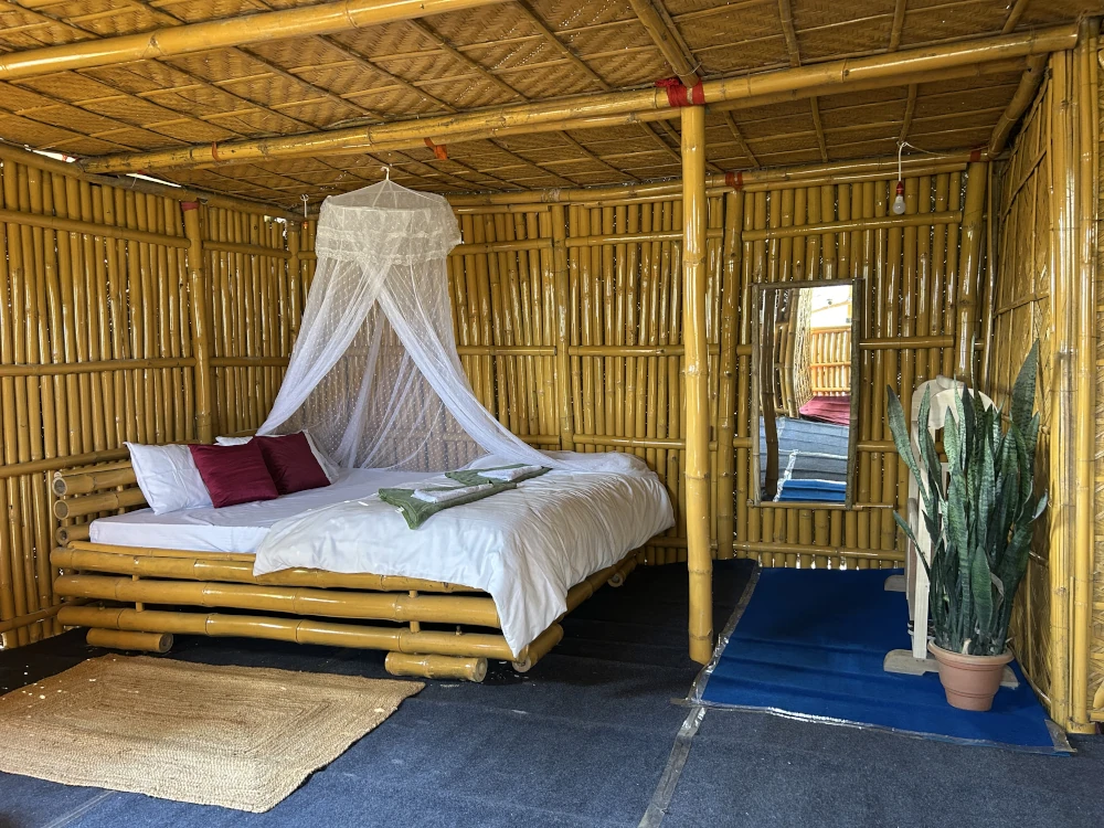 Stay in our traditional bamboo cottages—a resilient, eco-friendly construction method supporting a minimal carbon footprint.